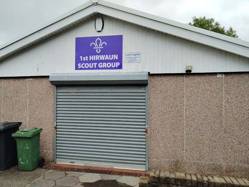 The Scout Hall is situated in an alley off the main road which is between number 19 and number 23 Merthyr Road.